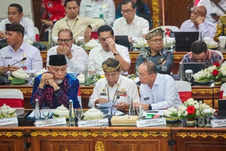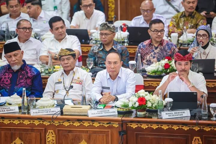 Gubernur Sulawesi Tenggara (Sultra) Mayjen TNI (Purn) Andi Sumangerukka menghadiri Rapat Konsolidasi Nasional dan Percepatan Operasionalisasi Koperasi Desa/Kelurahan Merah Putih di Kantor Gubernur Bali, Denpasar, Jumat (8/8/2025). Kegiatan ini dihadiri para gubernur se-Indonesia bersama sejumlah menteri Kabinet Merah Putih.